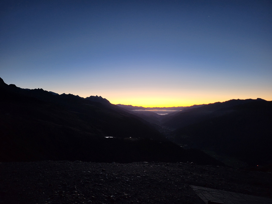 Sonnenaufgang erleben heisst früh raus: 04:00 Tagwache, 05:00 Abfahrt.