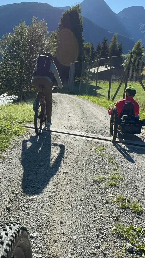 Danach ging es auf dem Wanderweg weiter hinunter nach Disentis. Wunderschön, aber fahr- und sicherheitstechnisch anspruchsvoll – dieser Abschnitt empfiehlt sich nur in Begleitung geübter Fussgänger*innen bzw. MTBler. Wer es etwas entspannter mag, kann alternativ die Flurstrasse nehmen, die jedoch ebenfalls einiges Können abverlangt.