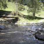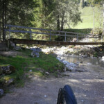 Den Weissenbach überquerte ich über eine Fuhrt, weil die Fussgängerbrücke mit dem Handbike nicht befahrbar ist. Das Wasser ist dort nicht tief, jedoch ist der Untergrund sehr sandig, trotzdem klappte das ohne Schwierigkeiten.