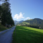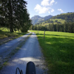 Vom Campingplatz „Wilder Kaiser“ in Kössen fuhr ich über Kreuzgütl, Leitmang nach Bichlach. Dort folgte ich kurz der Mozart-Radroute nach dem Gehöft Oberbichlach, dort wo die MOZ scharf rechts abbiegt fuhr ich geradeaus weiter.