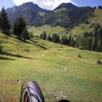 Die nächsten paar hundert Meter kurbelte ich über einen idyllischen Wiesenweg der anschliessend in eine sehr ausgewaschene kurze Abfahrt mündete.